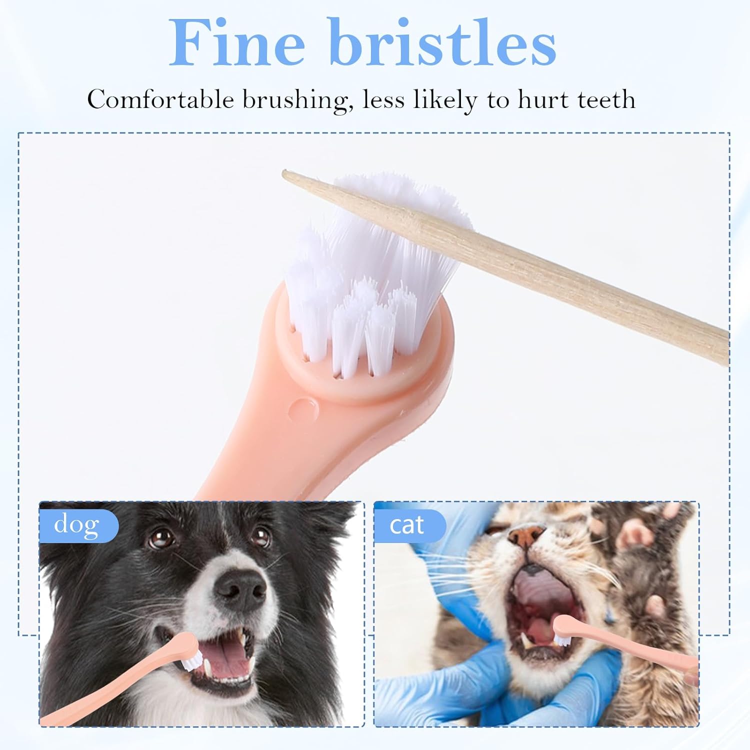 【Thoughtful Design】Pet toothbrushes feature made nylon bristles that are soft yet effective. These bristles provide a thorough cleaning without causing any irritation to your pet’s gums, ensuring a pleasant and effective brushing experience for both dogs and cats