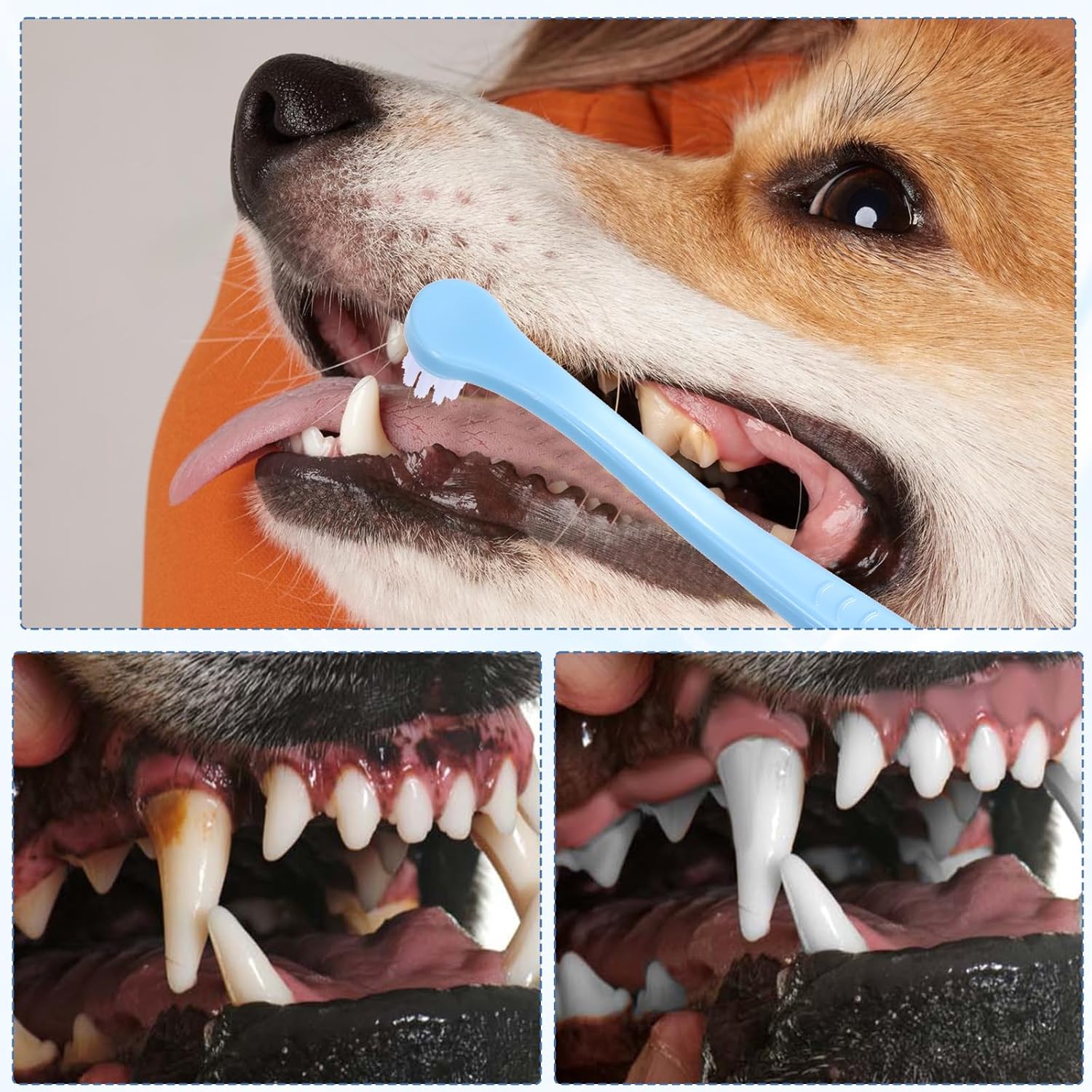 【Easy To Use】Practical pet toothbrushes are designed for convenience, with an optimal size and length that make the cleaning process straightforward and hassle-free. Regular use of these toothbrushes can deeply clean your pet’s teeth, providing a more comfortable experience for your furry friend