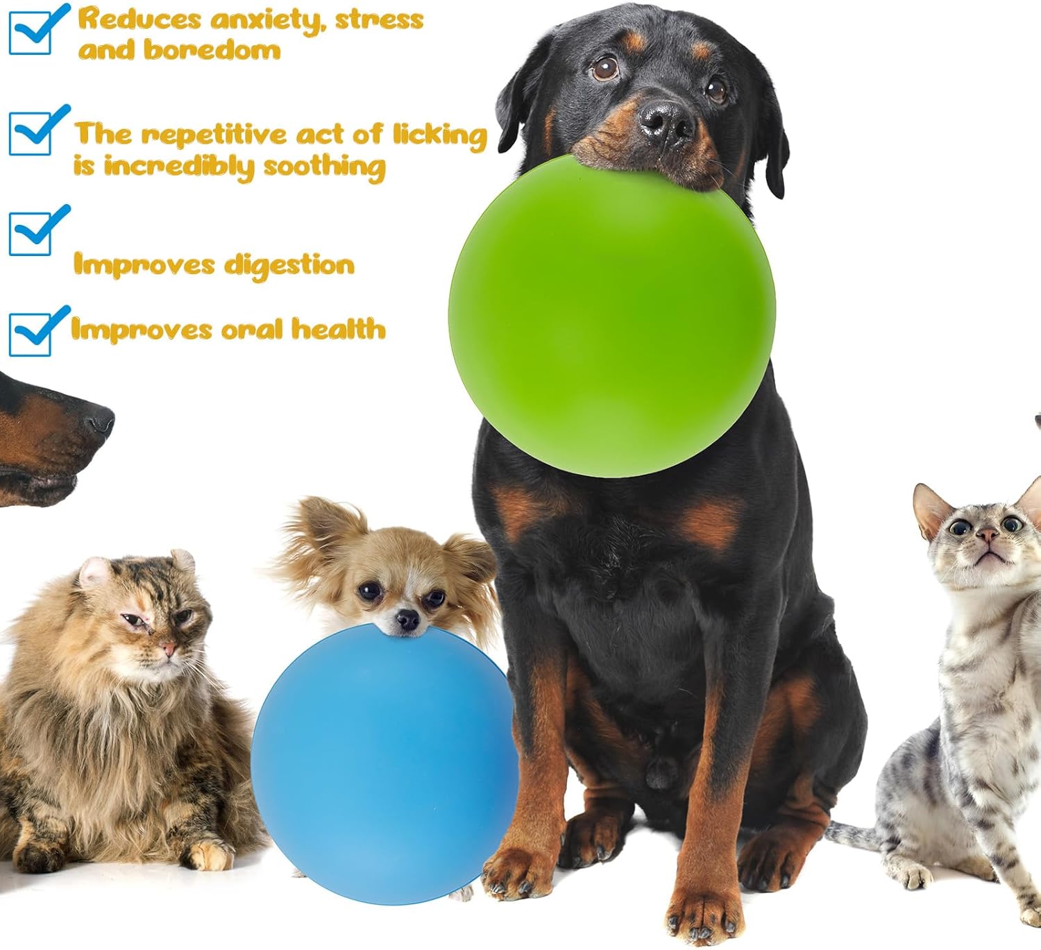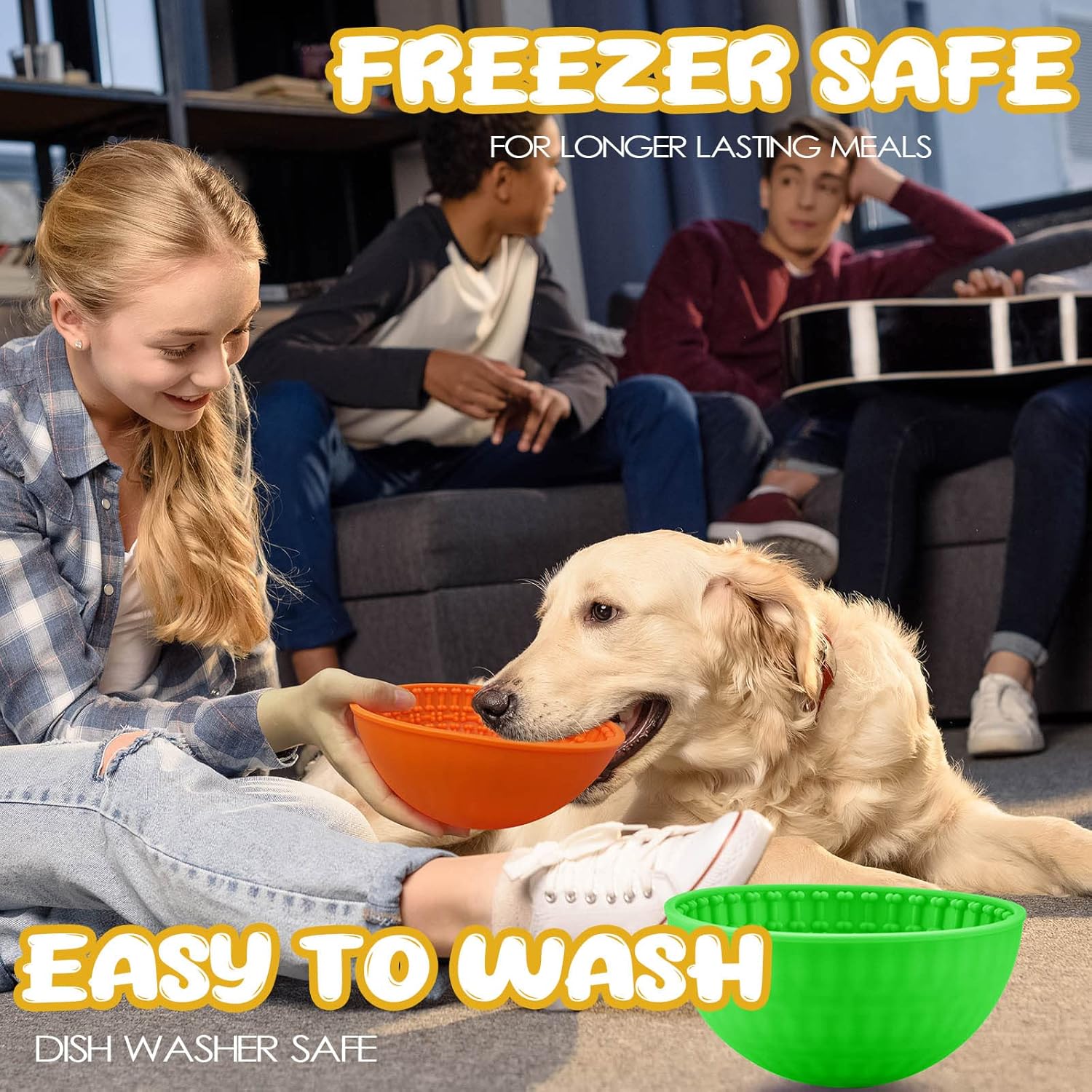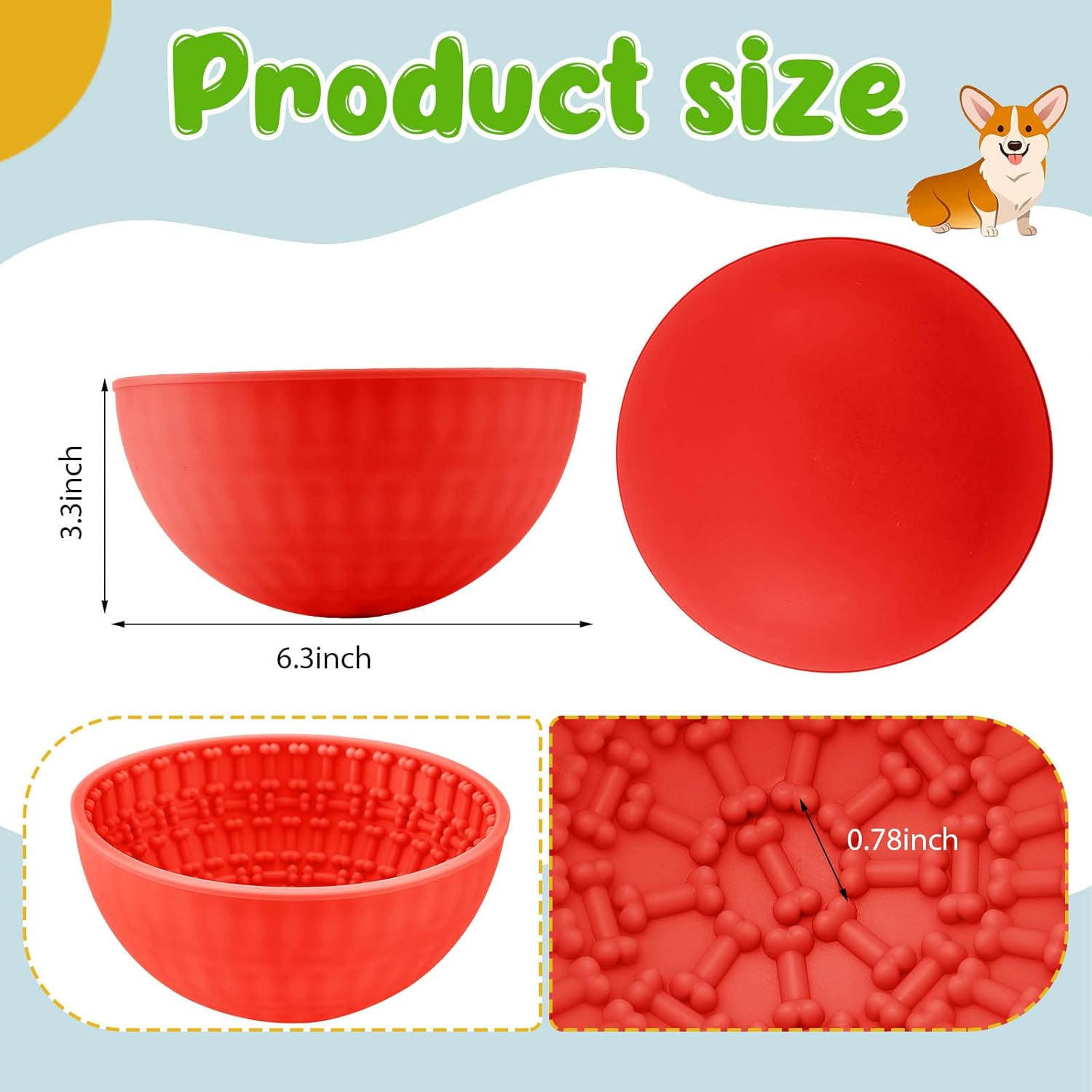 These silicone slow feeder dog bowls have 4 colors (red, blue, green, orange), which allow you to choose and use according to your preference, and are enough to meet your daily use and replacement needs.