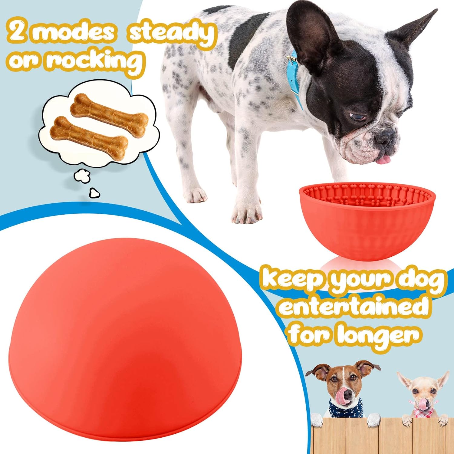 Anxiety Relief and Have Fun: this dog licking bowl has 2 different modes, steady and swaying, to attract your pet’s attention; It is designed with bone shaped mats inside, which help relieve dog’s stress and boredom, decrease dog’s destructive behavior, keep your dog happy and calm