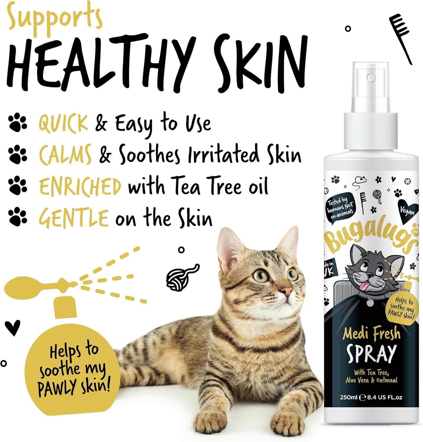 Bugalugs Cat Spray for itchy skin. Leave in spray to condition, nourish and hydrate skin and coat. Professional cat cleaning and grooming formula use alongside cat shampoo (Spray)