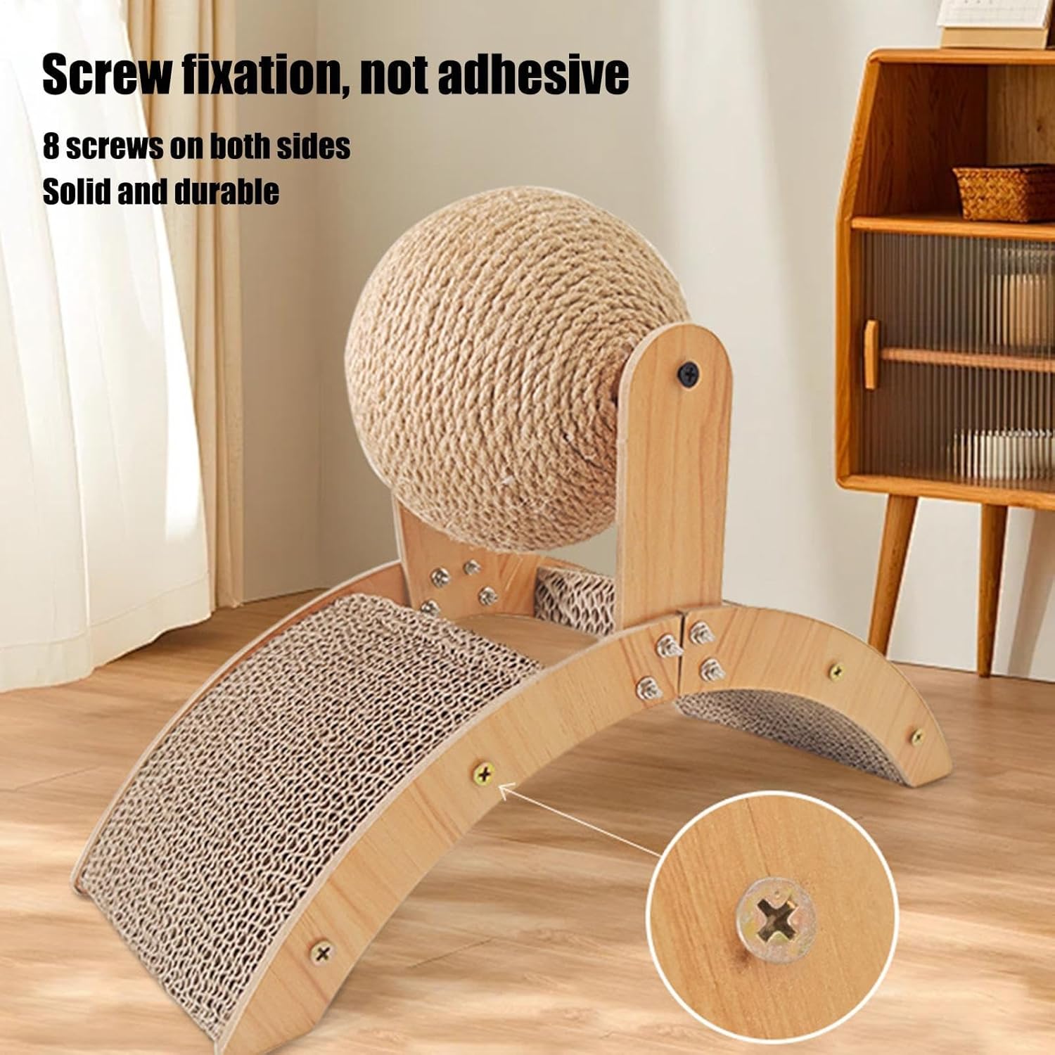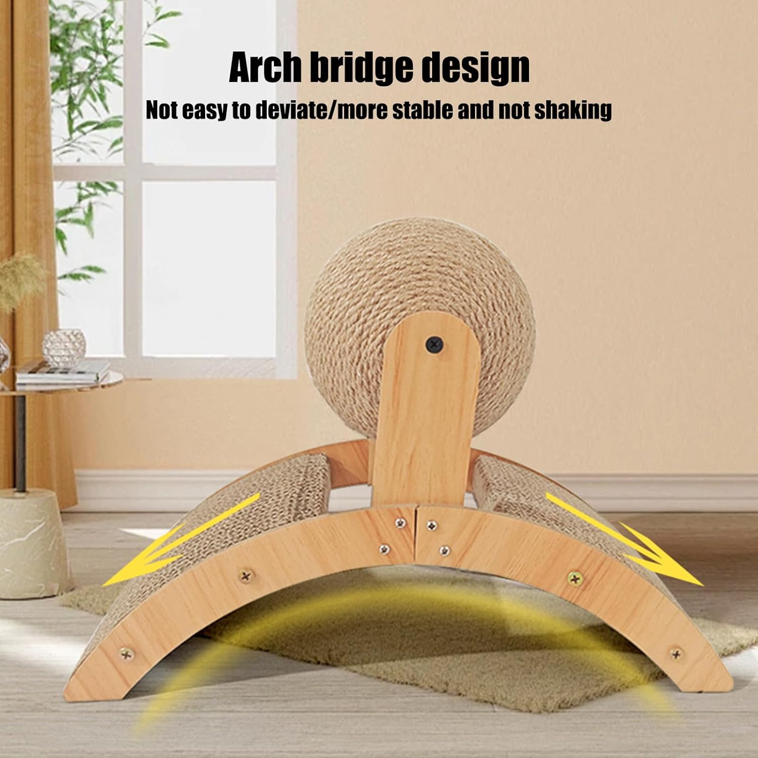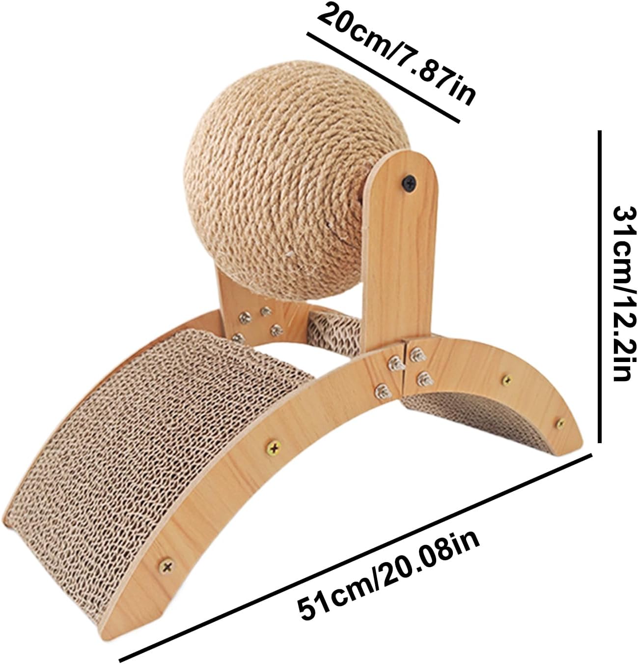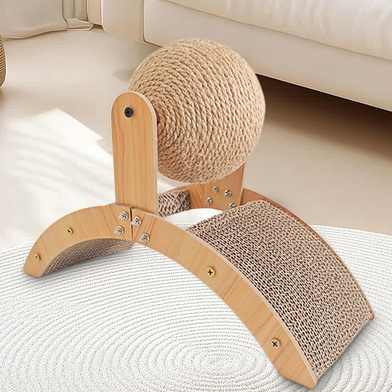 Designed with an arch bridge structure, this Cat Scratcher includes a stimulating ball to exercise. Crafted from great sisal and wood, it protects indoor furniture while offering cats the chance to grind their claws comfortably. Ideal for both indoor and outdoor use, it keeps felines active and cozy, eliminating boredom effectively. Keep your cat entertained and your furniture safe with this wood sisal ball scratcher. Perfect for outdoor pet play, it promotes healthy claw growth by encouraging natural scratching behavior. Made from durable, materials, this scratcher is ideal for both indoor and outdoor use, offering a fun and effective way to prevent boredom while protecting your furniture. Its ergonomic design provides exercise and entertainment, making it a must-have toy for every cat owner looking to ensure their pet’s health and happiness.