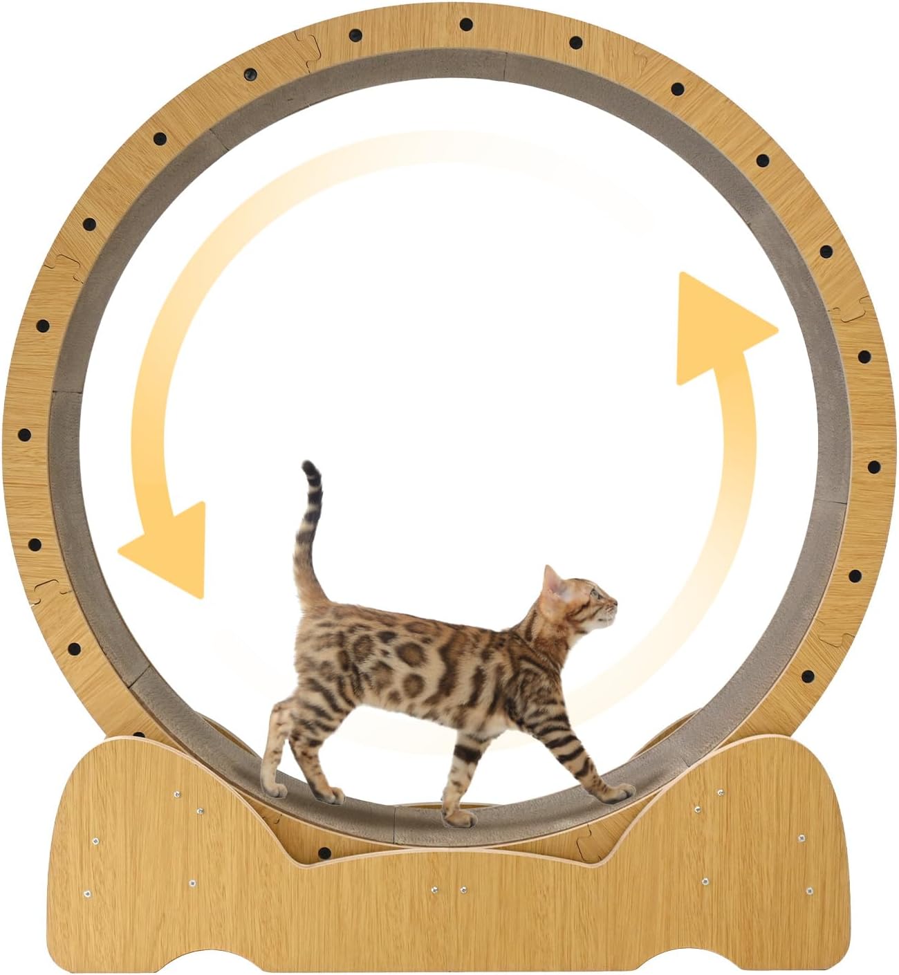 This cat wheels for indoor cats built in solid base, this cat exercise wheel base is widened to completely wrap the cat exercise wheel, very stable without worrying about tipping over. cat treadmill is truly huge, like a little wider and you could exercise your kid on it.