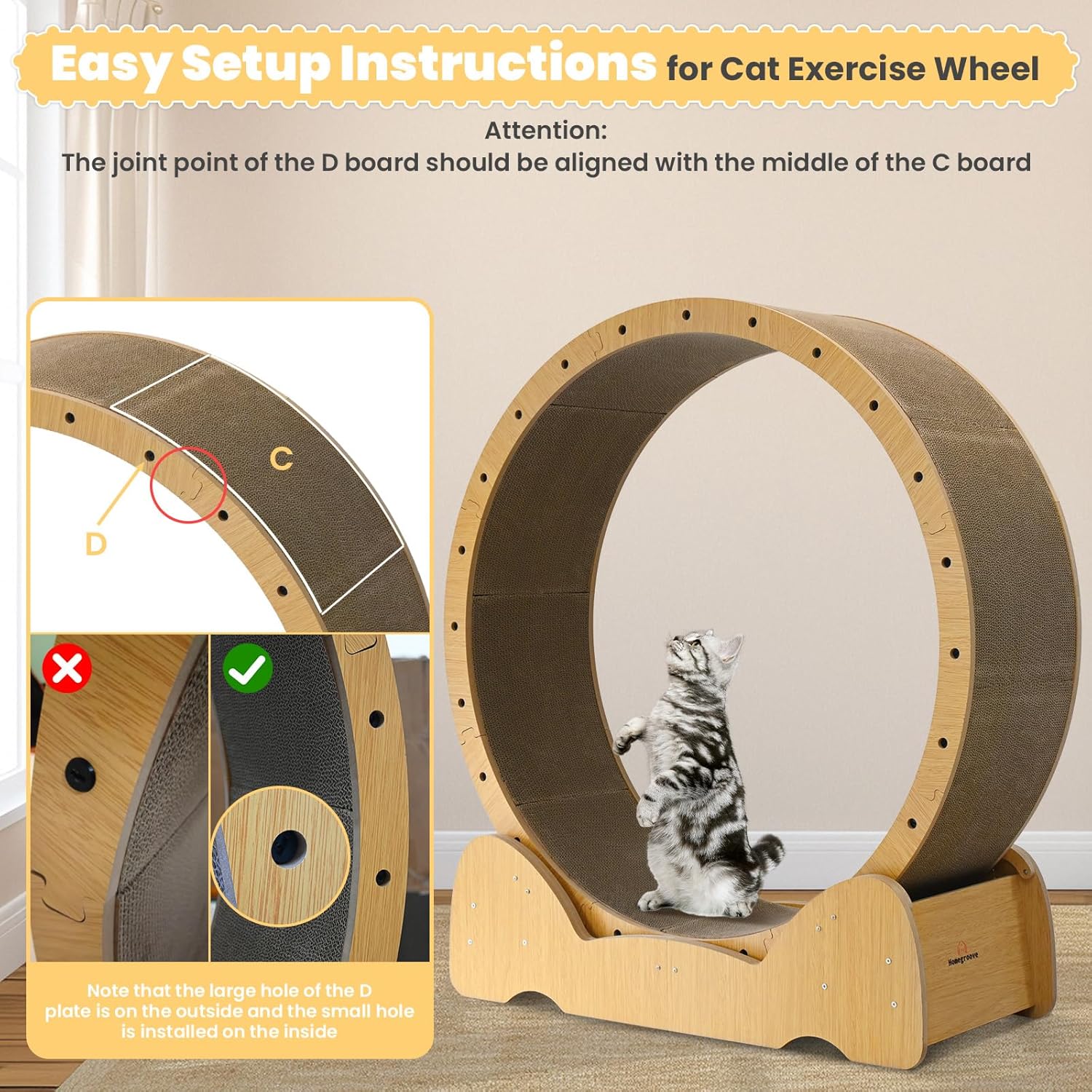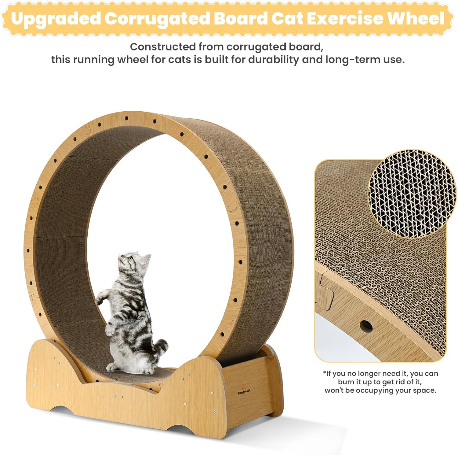 Corrugated Board is Easy to Maintain: Corrugated board can be disassembled and used on both sides. It meets the needs of your cat to exercise using the cat wheels for indoor cats, making it a versatile cat fitness device. The double-sided design has a long service life, and the cat exercise wheel can double as a cat bed and cat scraper for indoor cats to meet the scratching needs of cats