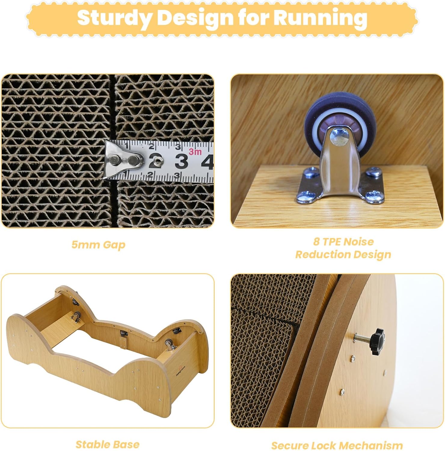 Run Easier to Keep Your Cat Healthy: If you want to encourage your cat to exercise more and reduce boredom, acorrugated board can help your cat on the treadmill to make her want to run. Our cat treadmill features an internal roller support design that ensures flexible rotation of the smooth cat wheel for the indoor cat experience, improving your cat’s agility and health through fun exercise