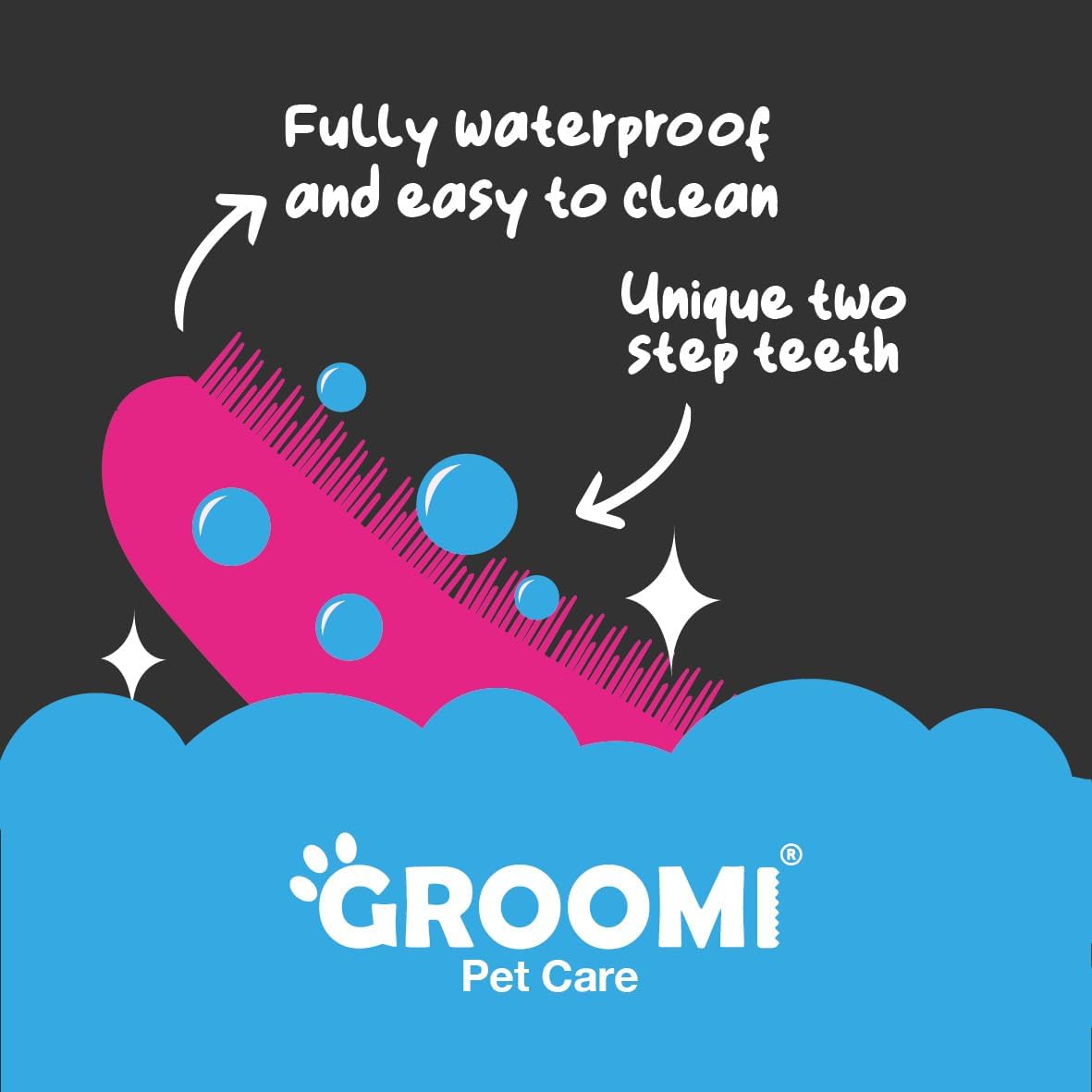 This expertly crafted de-shedding and detangling tool is the answer for your furry friends, providing gentle yet powerful grooming for double-coated breeds The Groomi deshedding brush is carefully engineered to provide gentle and effective deshedding grooming for your pet. It features a wide, shallow comb design to prevent penetration to the skin and to ensure that fur doesn’t clog or break. The Groomi Pet Care Foaminator Brush is a must-have for pet owners who want a gentle but effective grooming experience for their furry friends. It is perfect for both long and short haired pets and helps with shampoo lather.