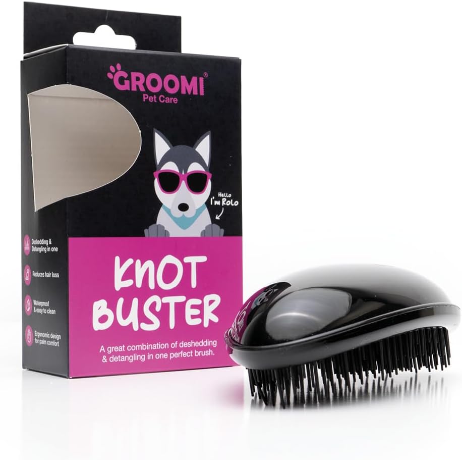 Unleash the Knot Buster by Groomi Pet Care: This expertly crafted de-shedding and detangling tool is the answer for your furry friends, providing gentle yet powerful grooming for double-coated breeds like Pomeranians, Shiba Inus, and Huskies.