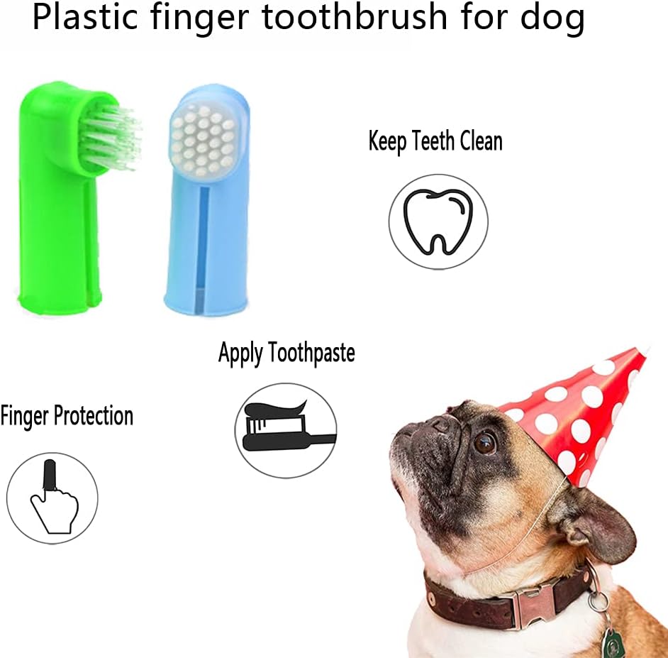 🌸【Material safety】: Finger toothbrush is made of soft silicone material, which is safe and durable; the long-handled toothbrush is made of plastic; and won’t scratch your dog’s mouth while brushing.